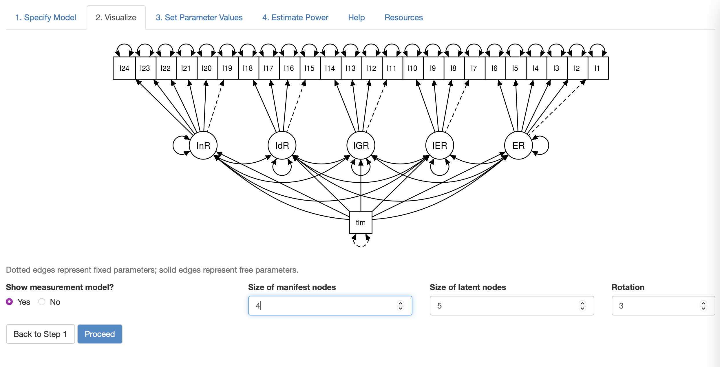 The next step is to input the model syntax and corresponding parameter estimates generated by lavaan: