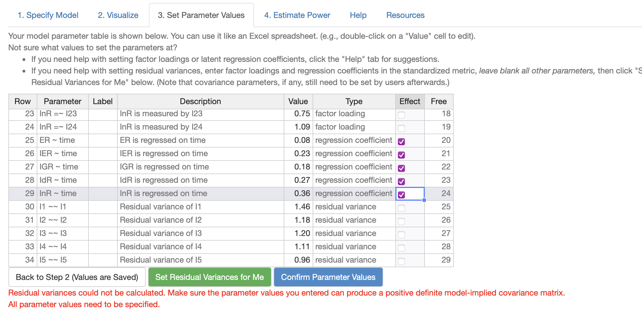 Then, check the effects needed to be examined. In this case, the five time effects on ER, IER, IGR, IdR, and InR.