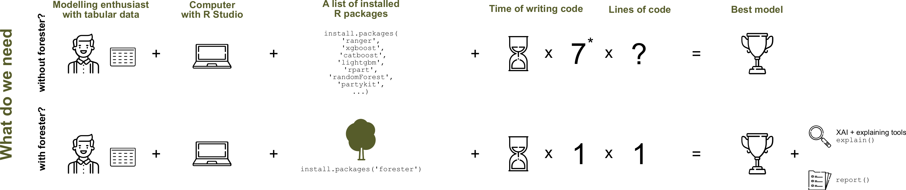 “The forester package is an AutoML tool in R that wraps up all machine learning processes into a single train() function, which includes:”