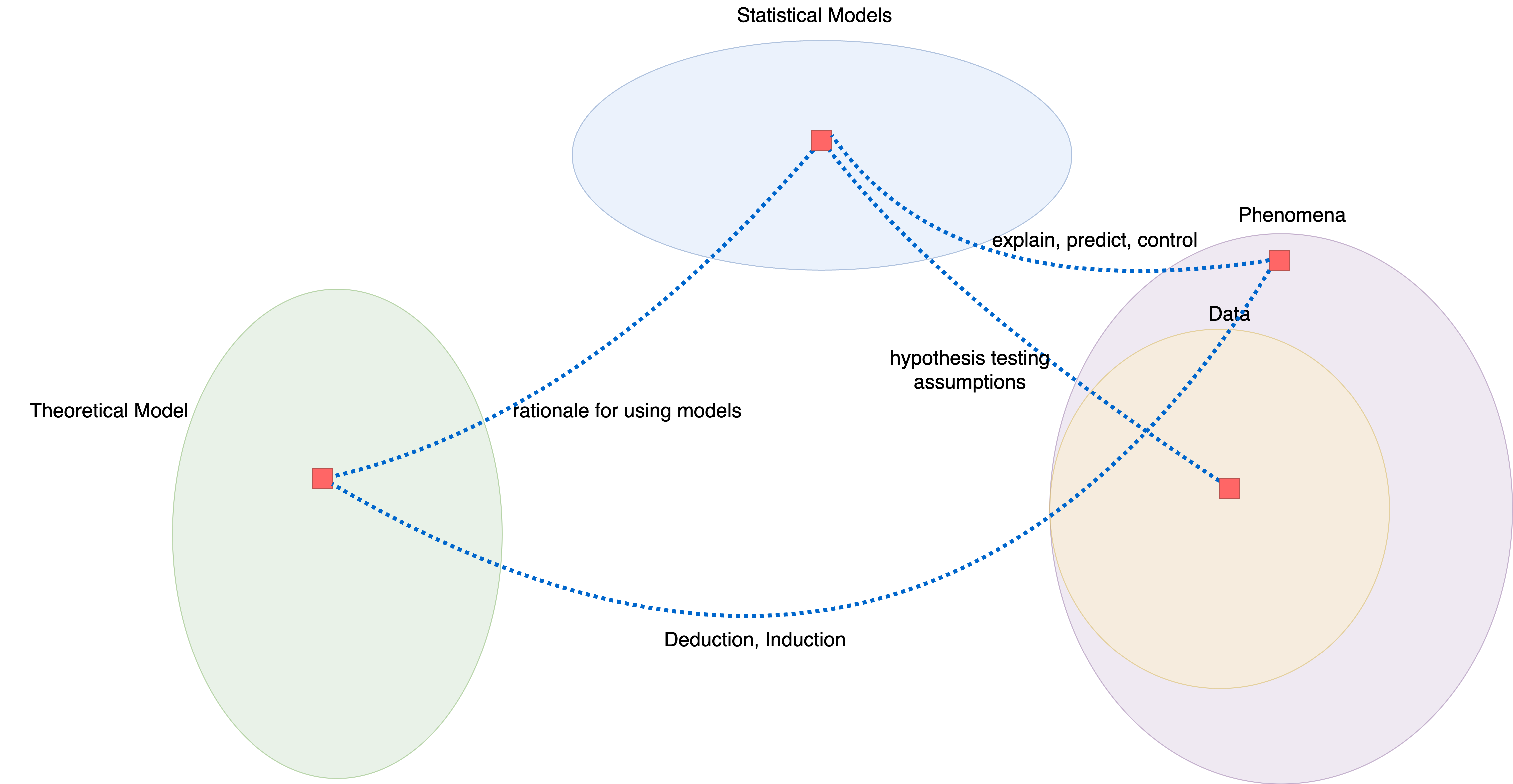 Theories are those tools can explain, predict, control phenomena. They are also in one point between strong to weak given to what degree they can explain, predict, and control phenomena. Typically, theorectical model is related to the date generation process—how data is generated, which is unknown in prior. We can link theory to data by using statistical modeling that impose assumptions on the data. However, the statistical models themselves can not be used to measure how strong or weak the theory is.