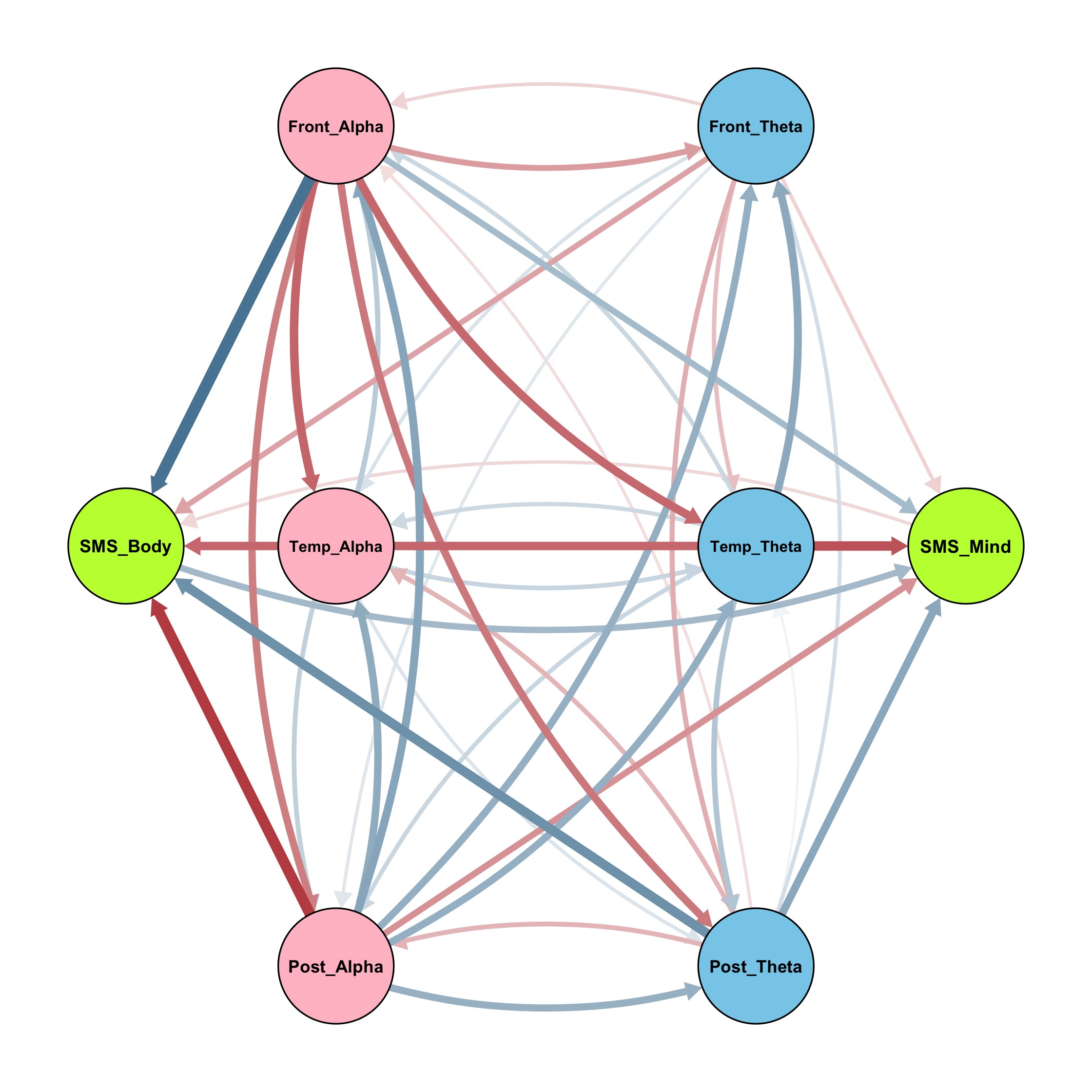 e.g., Posterior theta power enhances mindfulness, while temporal-central theta power suppresses mindfulness