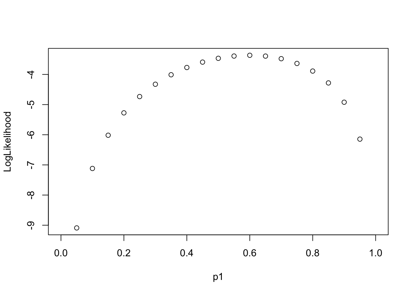 Likelihood = sapply(p1, \(x) choose(nTrails,nSuccess)*(x)^nSuccess*(1-x)^(nTrails - nSuccess))