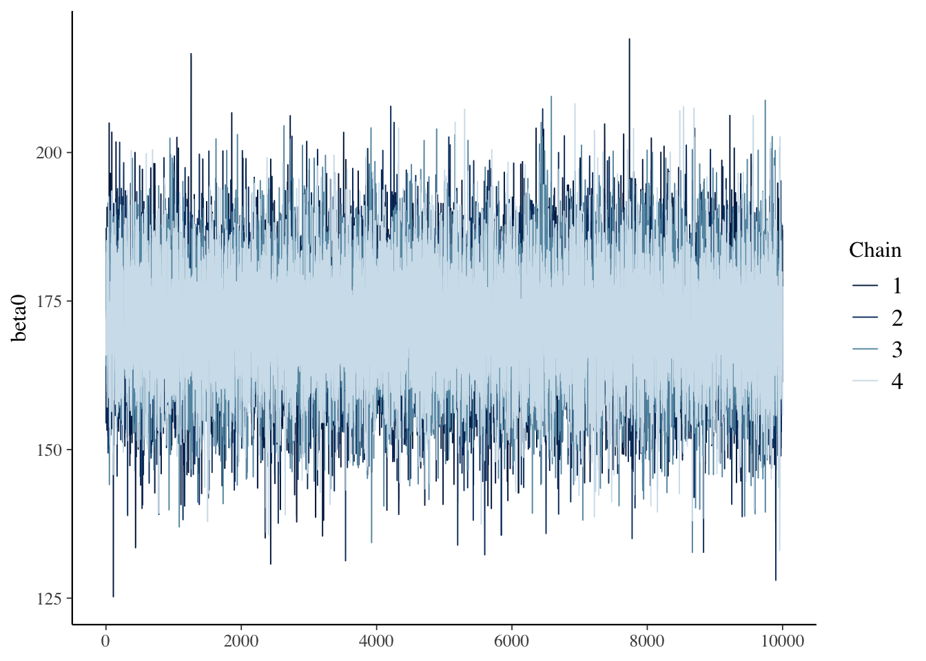 - **Traceplot**: Visual diagnostic showing parameter values across iterations