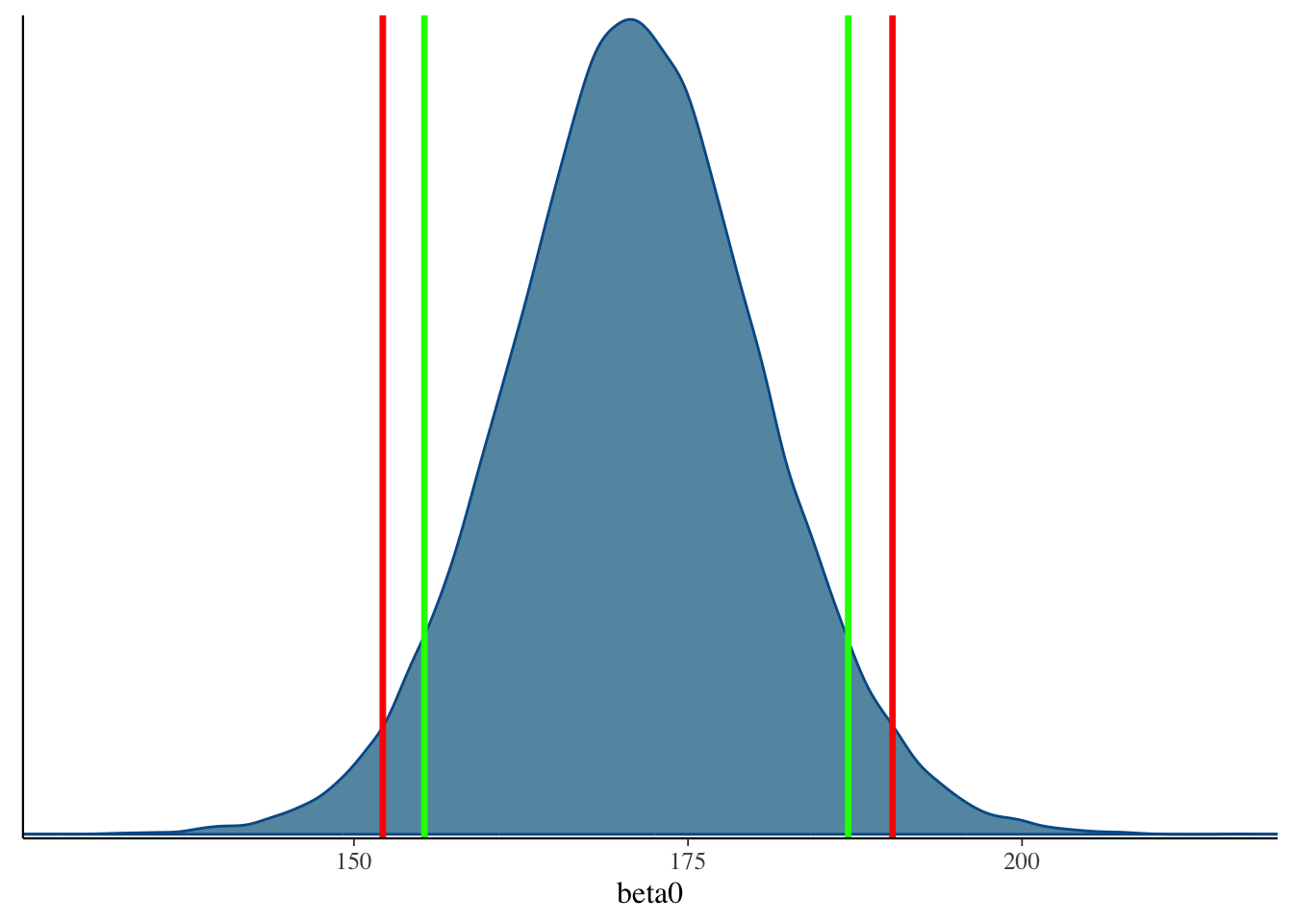 geom_vline(xintercept = quantile(model00.samples$draws('beta0'), c(.05, .95)), col = "green", size = 1.2)