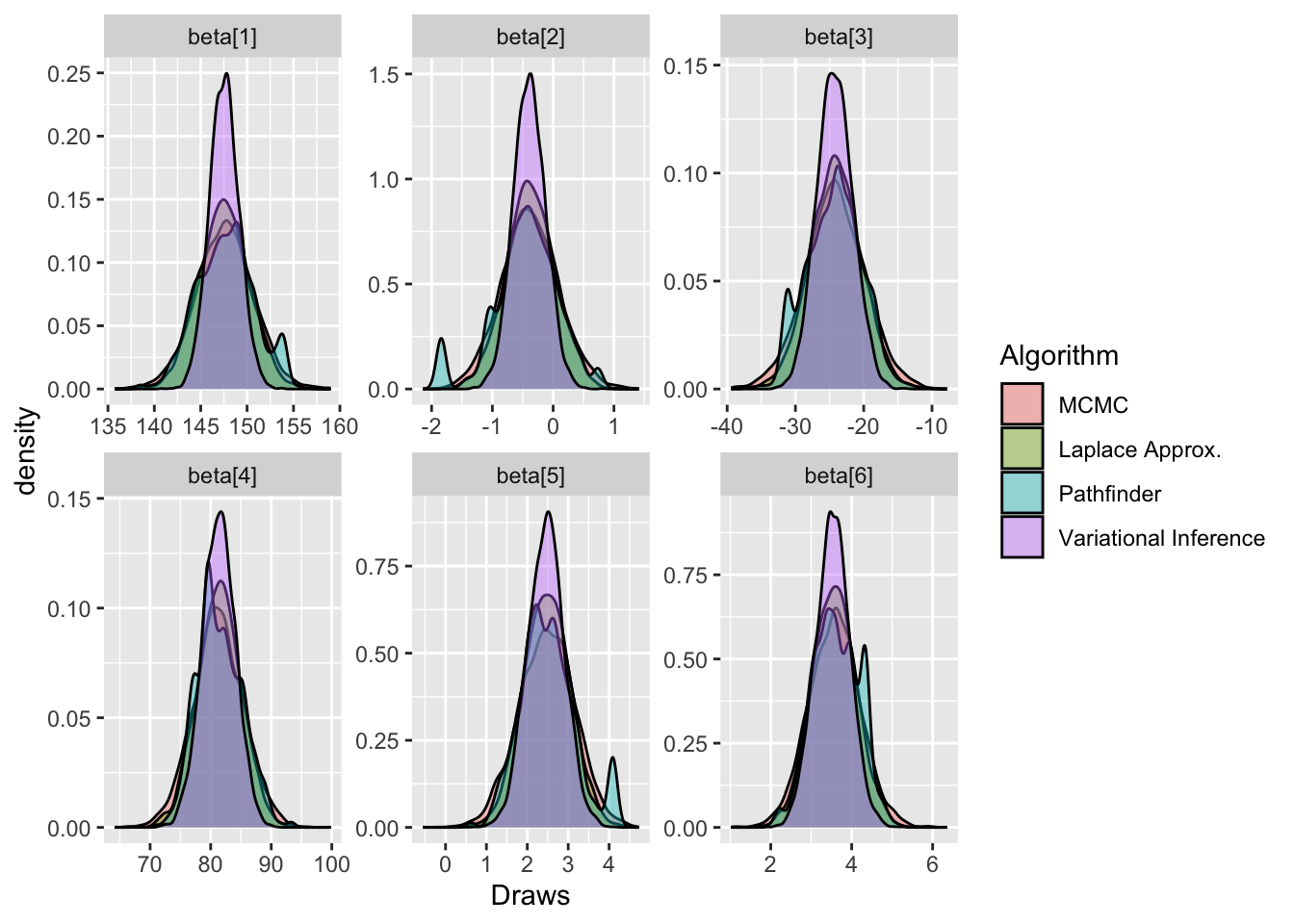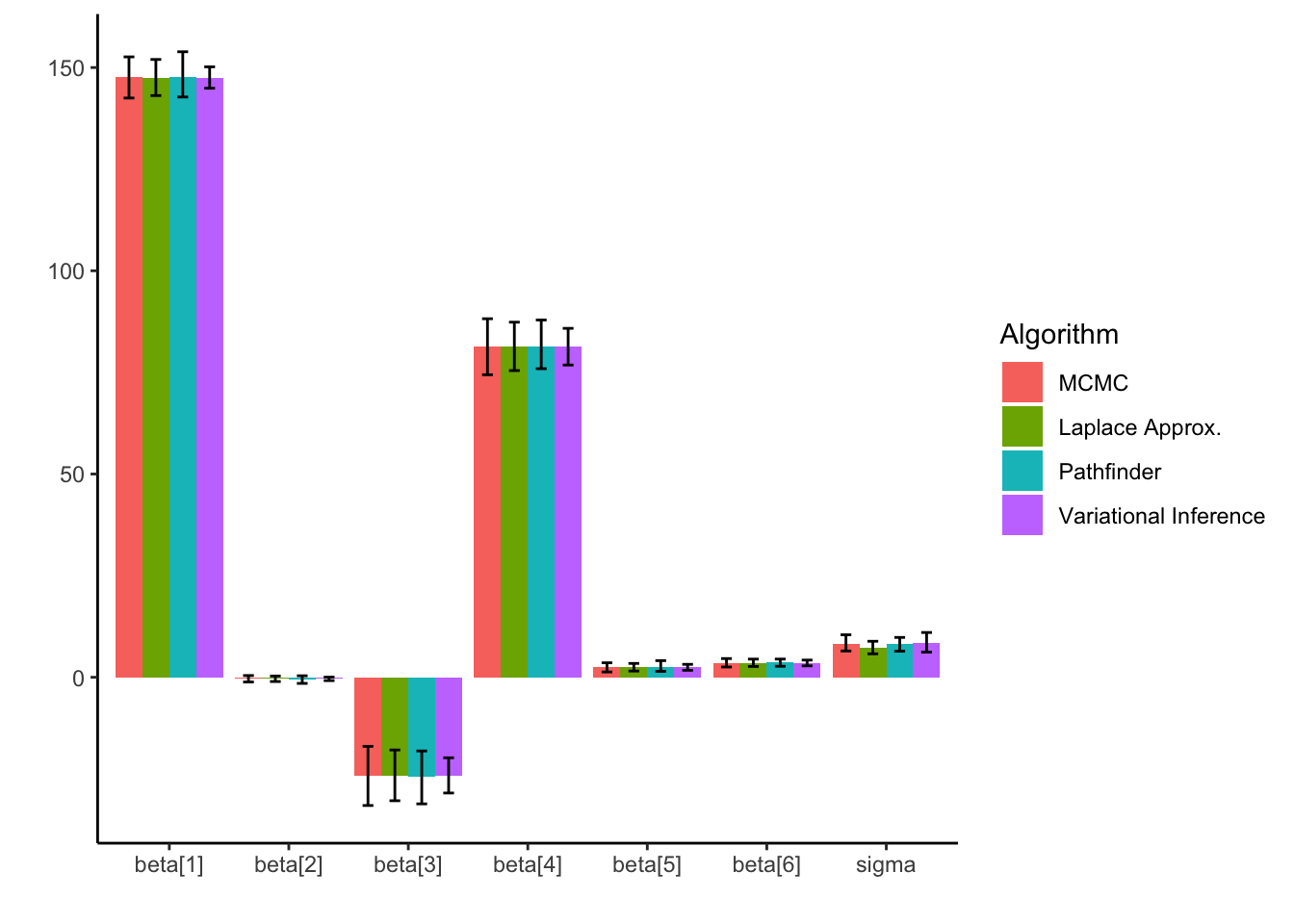 mutate(Algorithm = factor(Algorithm, levels = c("MCMC", "Laplace Approx.", "Pathfinder", "Variational Inference"))) |>