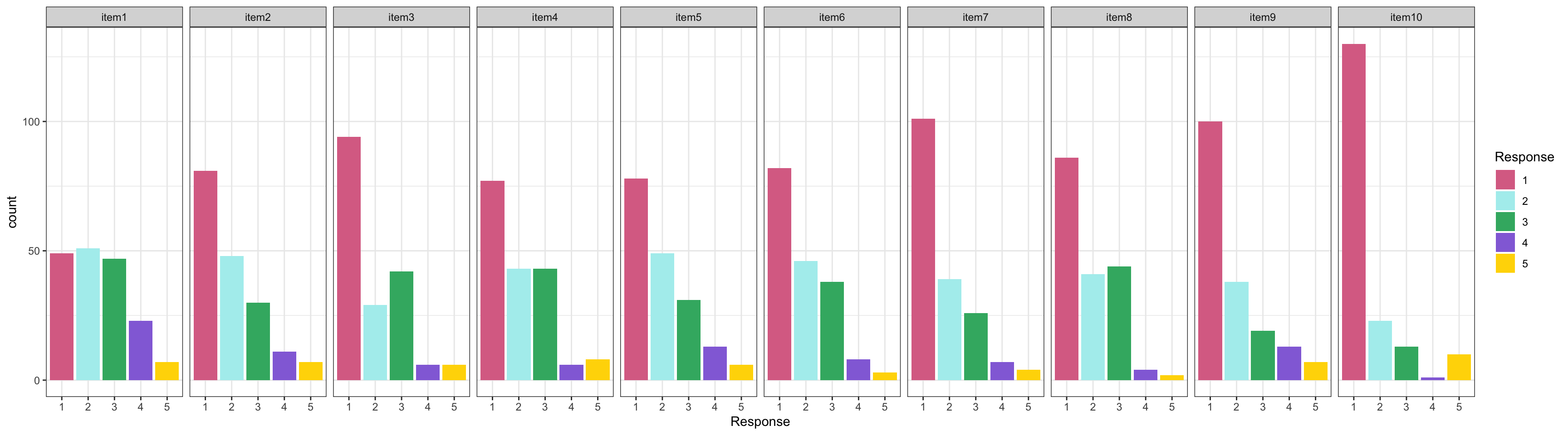 - Items have varied item difficult and Positive skewed item response distribution
