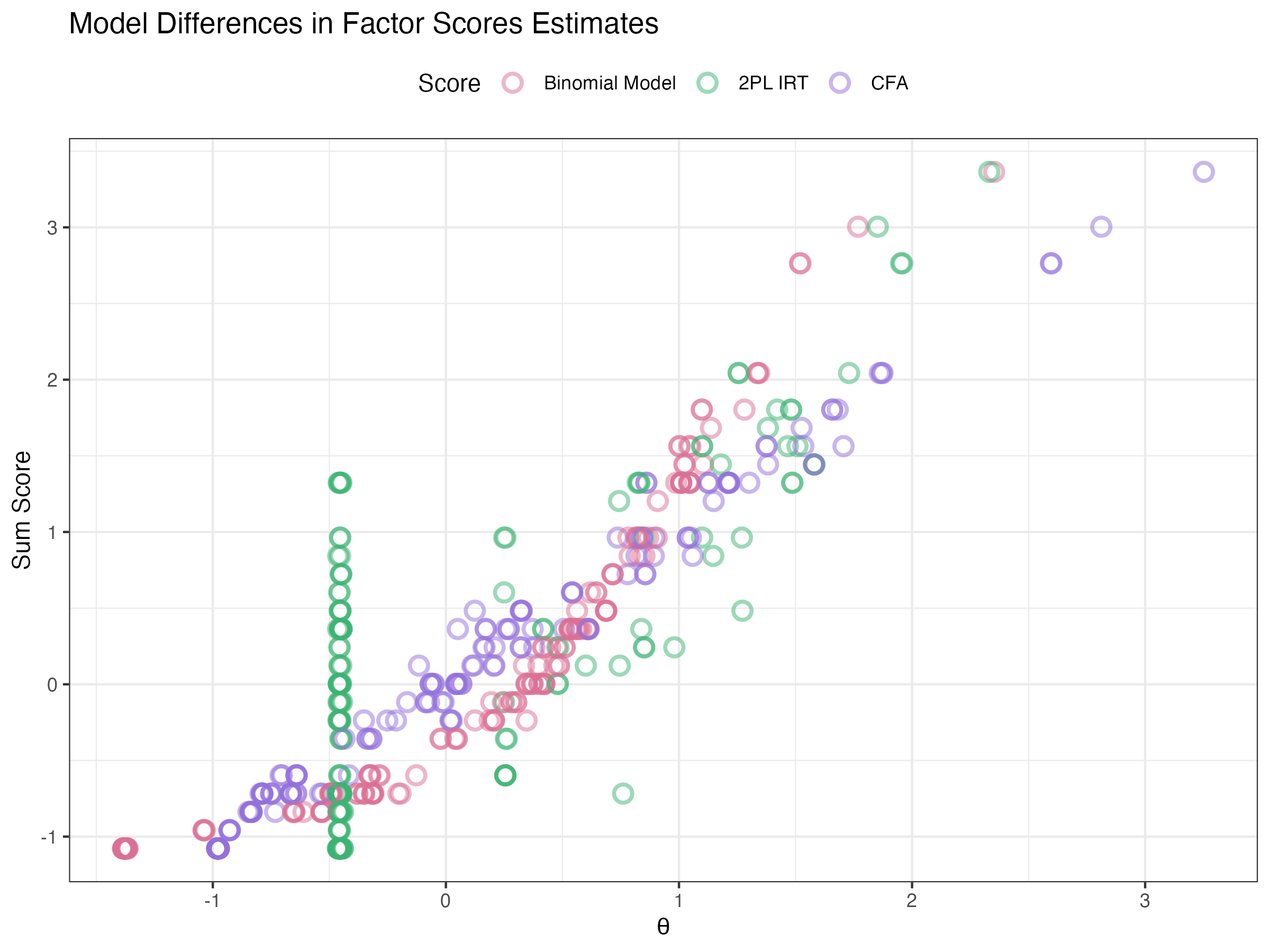- Show how to estimate unidimensional latent variable models with polytomous data