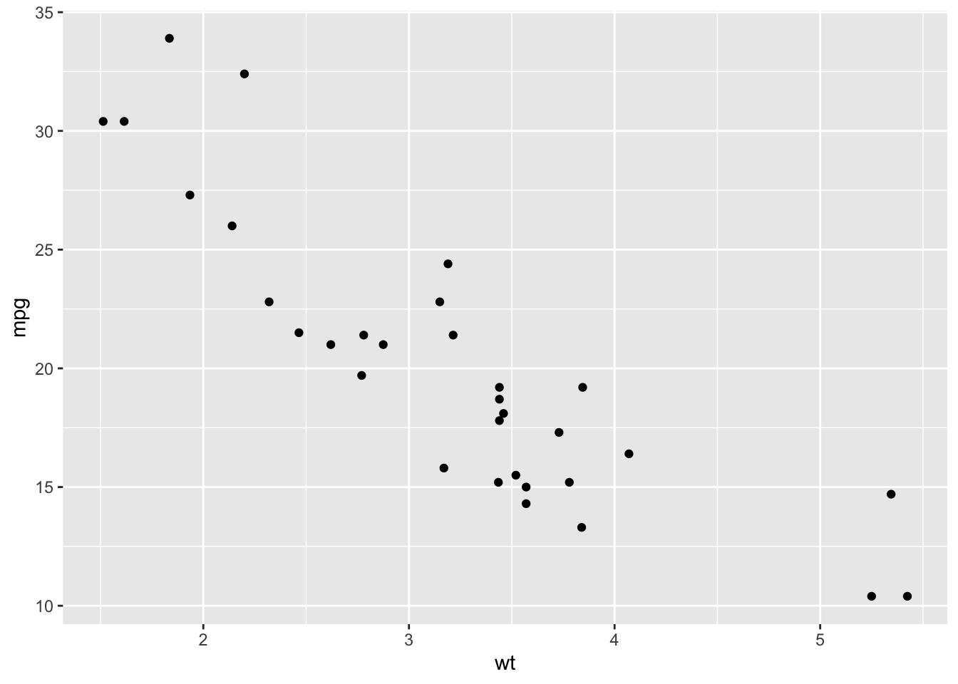 ggplot(mtcars, aes(wt, mpg)) + geom_point()