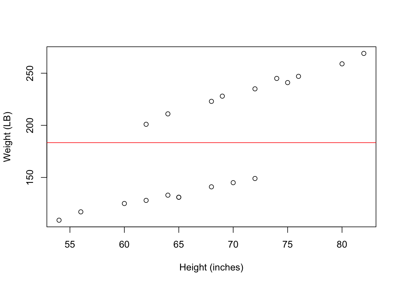 dataSexHeightWeight # You should find data named "dataSexHeightWeight" already loaded id sex heightIN weightLB