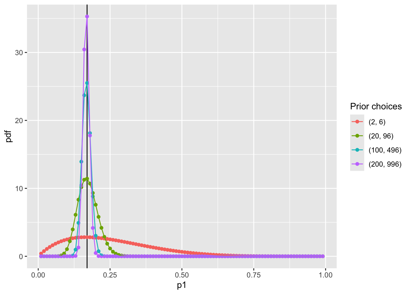 geom_path(aes(group=p1), size = 1.3)Step 2: Choose the Prior Distribution for p_1