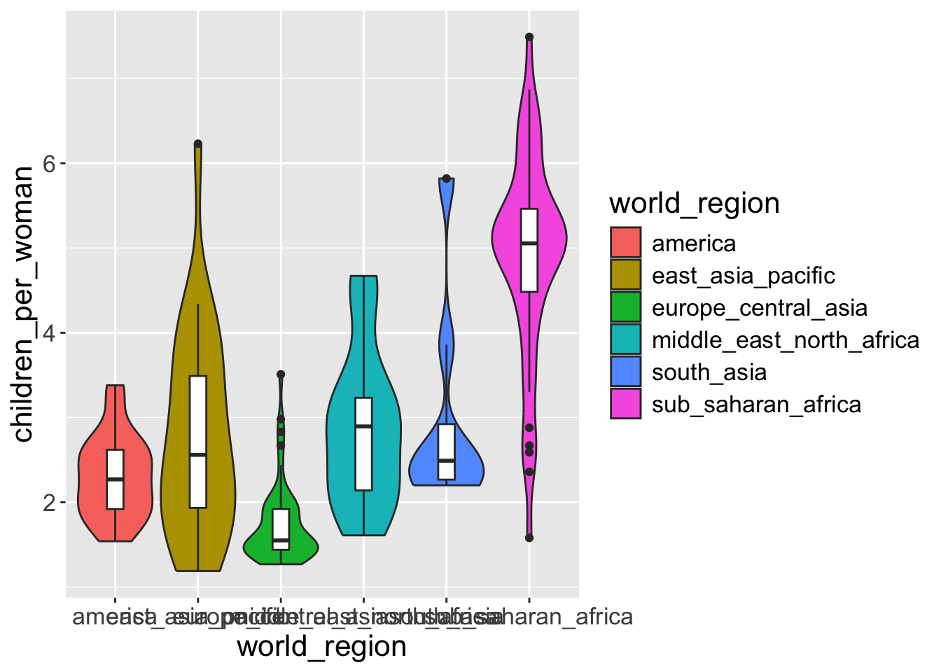 aes(fill = world_region), fromggplotwhich applies to all geometries - violine and boxplot - 2