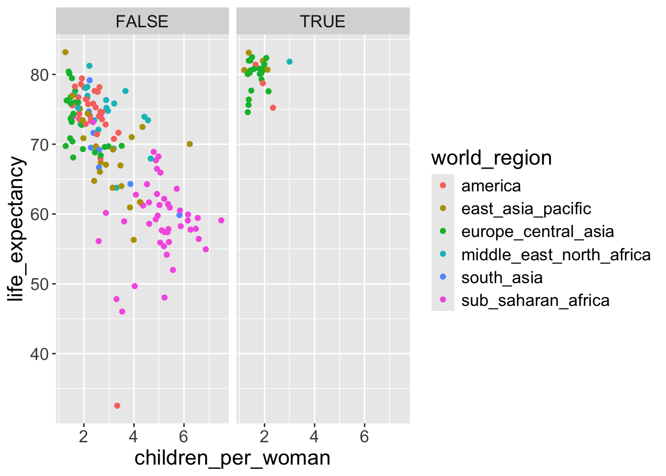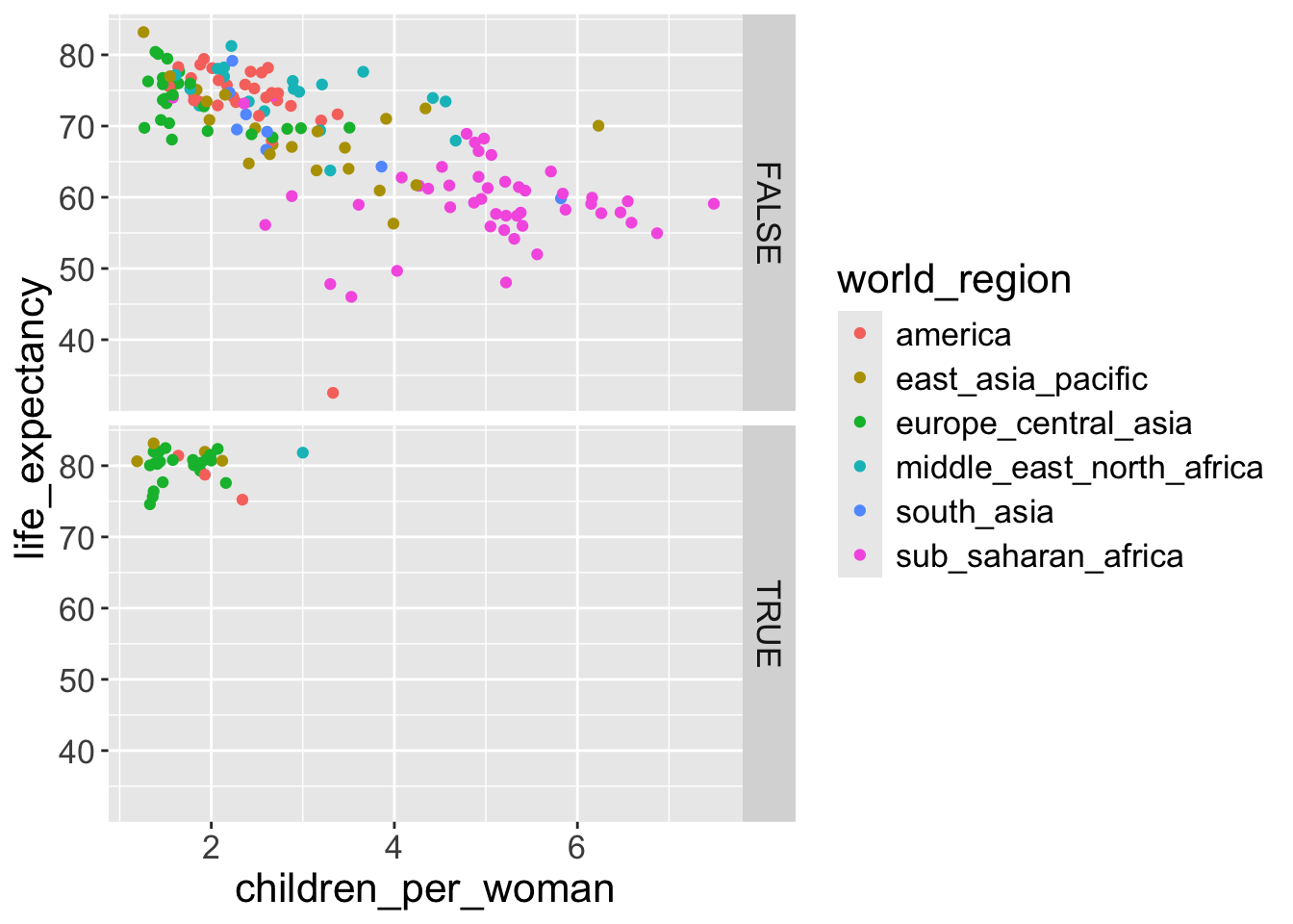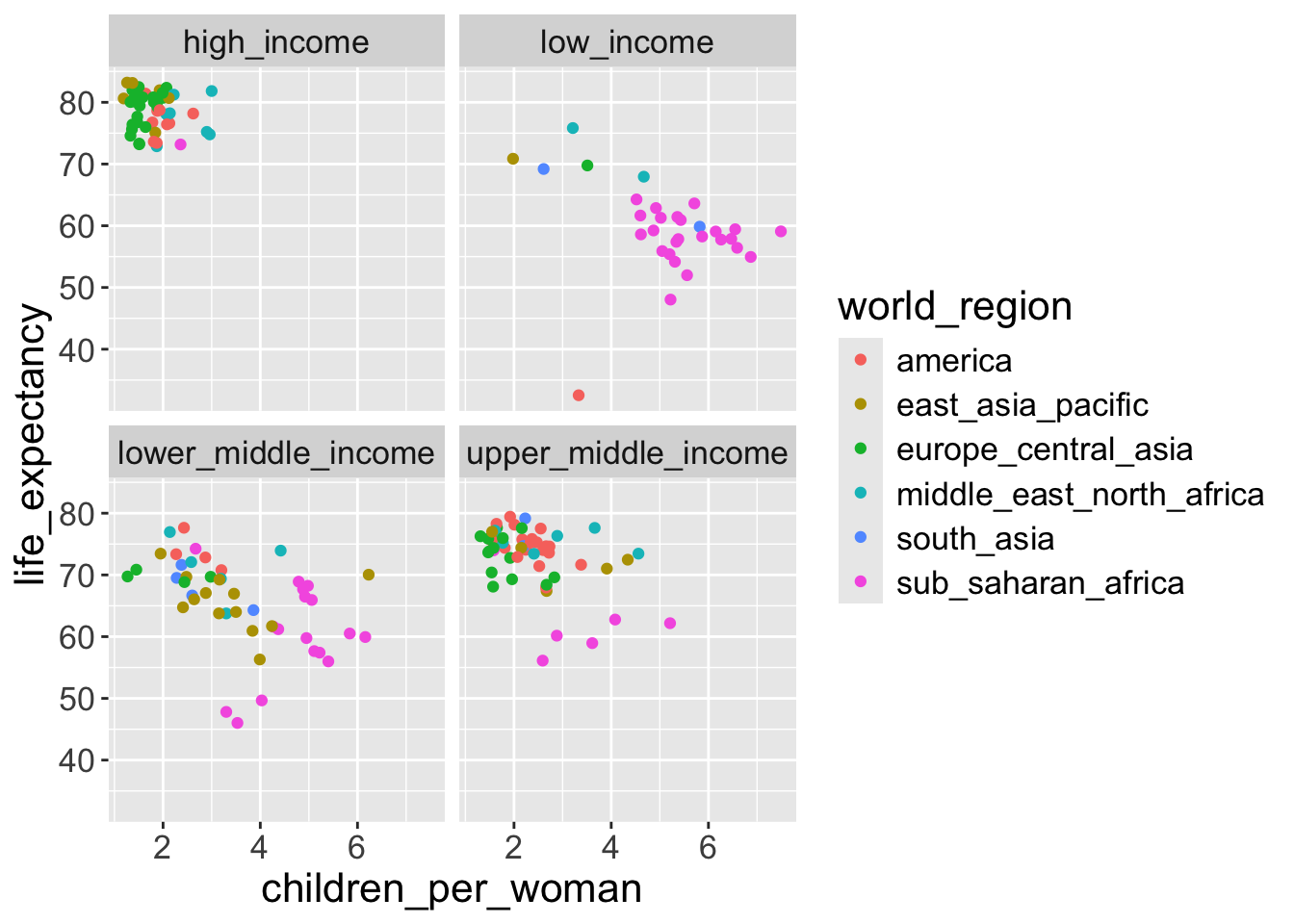 facet_wrap(facets = vars(income_groups))- If instead we want a matrix of facets to display