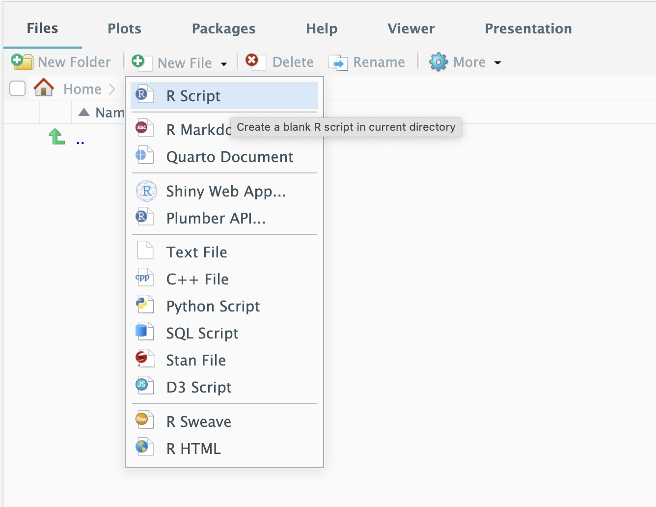 In your R folder, create a new R file named hello.R: