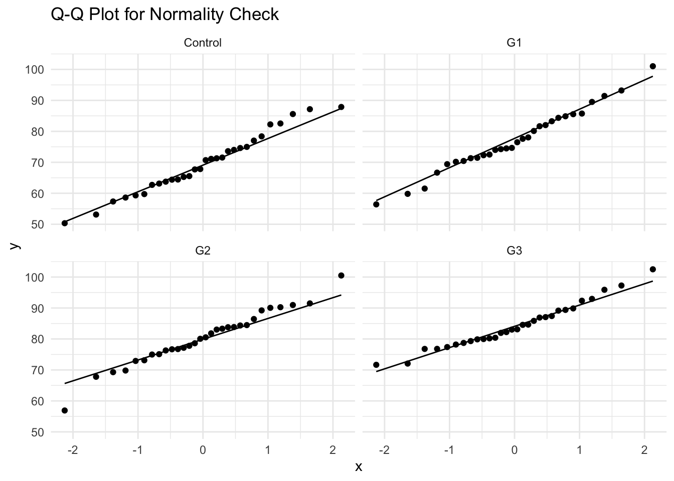 - ANOVA is **robust** to minor violations of normality, especially for large sample sizes (Central Limit Theorem).
