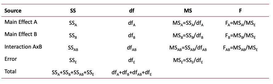 - $df_{AB} = df_A \times df_B$ (interaction df)